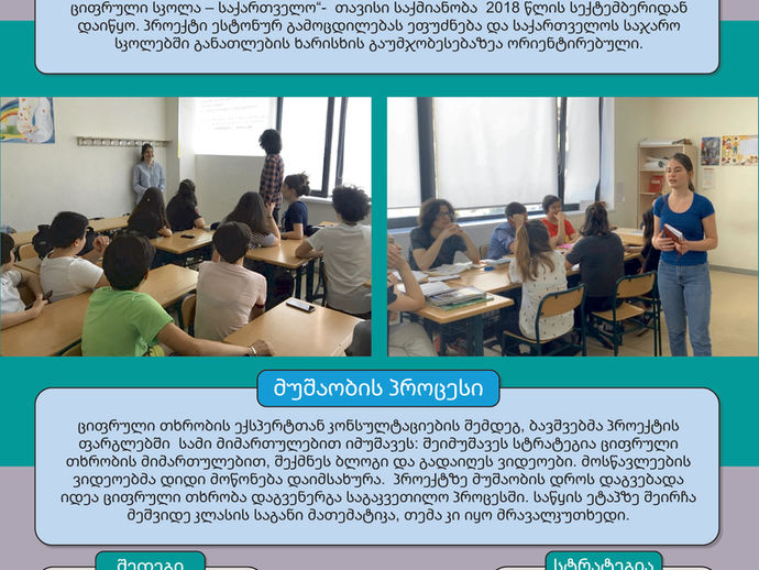 ციფრული თხრობის ექსპერთან შეხვედრის შემდეგ მოსწავლეები დაიყვნენ ჯგუფებად და დაიწყეს მუშაობა ციფრული თხრობის ვიდეო რგოლებზე. ვიდეობი...